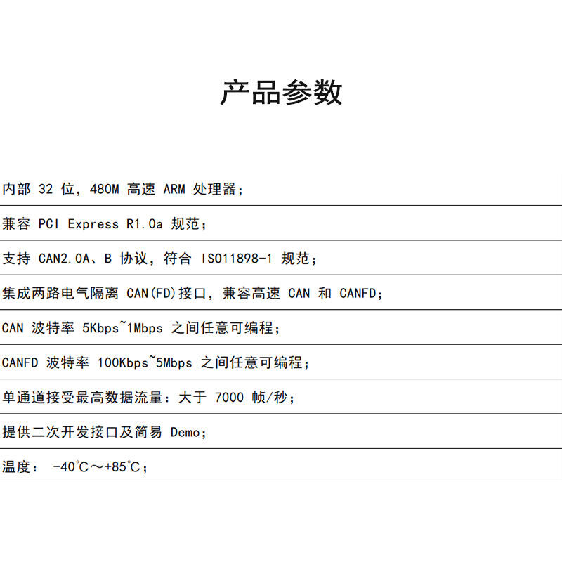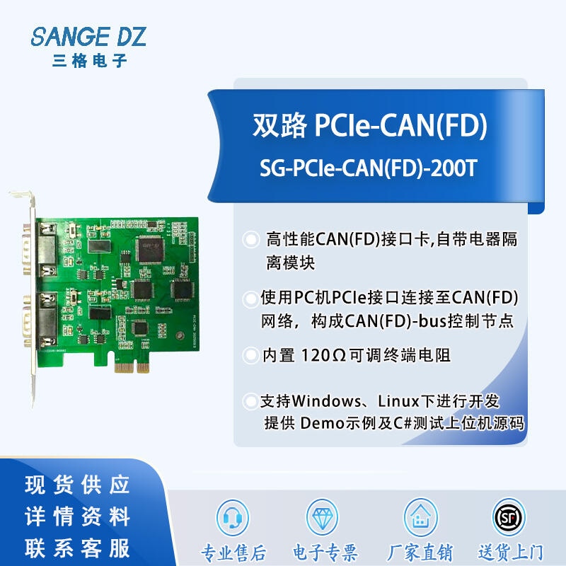 SG-PCIe-CAN(FD)-200T是一款高性能的CAN(FD)接口卡,使用PC机PCIe接口连接至CAN(FD)网络,构成CAN(FD)-bus控制节点。集成两路CAN (FD)接口,CAN通道集成独立电气隔离保护电路,内置120Ω可调终端电阻。 SG-PCIe-CAN(FD)-200T高性能CAN(FD)接口卡是CAN(FD)产品开发、数据分析的强大工具,自带电器隔离模块,保证板卡安全、稳定运行。支持Windows、Linux下进行开发,提供Demo示例及C#测试上位机源码。