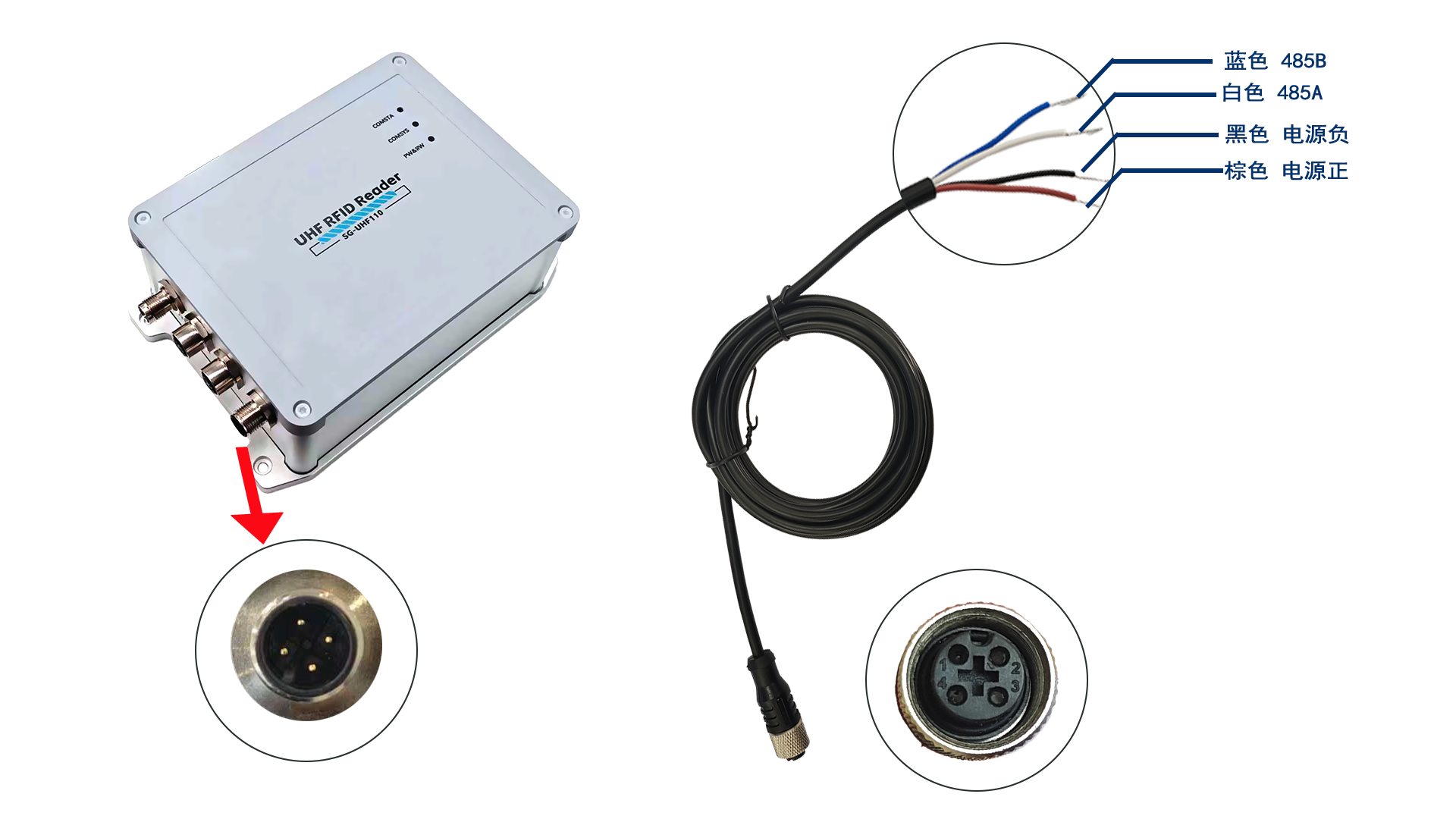 本系列产品用来读写超高频 RFID 标签,支持 Modbus_RTU/ModbusTCP 从站功能。可实现 4 米-8米(内置天线4米,外置天线8米)距离内对超高频标签的 EPC、TID 和 USER 数据区的读取,2 米距离内对超高频标签的 EPC 和 USER 数据区的写入。
